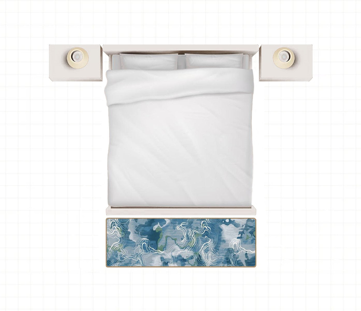Use a narrow rug or runner at the foot of the bed to ground the space.